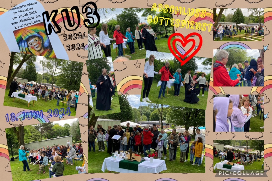 Pünktlich zur Verabschiedung der 28 Kinder des KU 3 Jahrgangs 2023/24 unserer beiden Gruppen aus Sümmern-Griesenbrauck und aus der Heide-Hombruch war der "Wettergott" mit uns, so das der Familiengottesdienst unter freiem Himmel wie geplant stattfinden konnte.