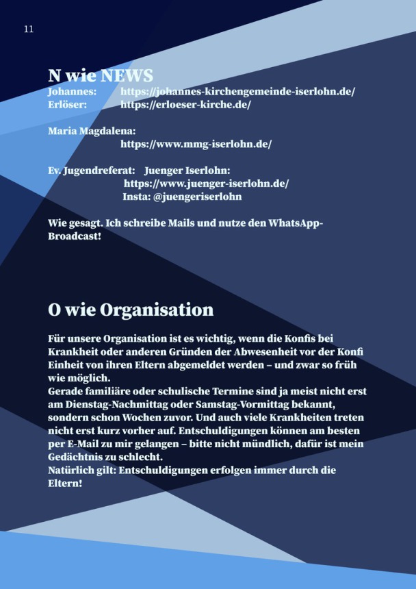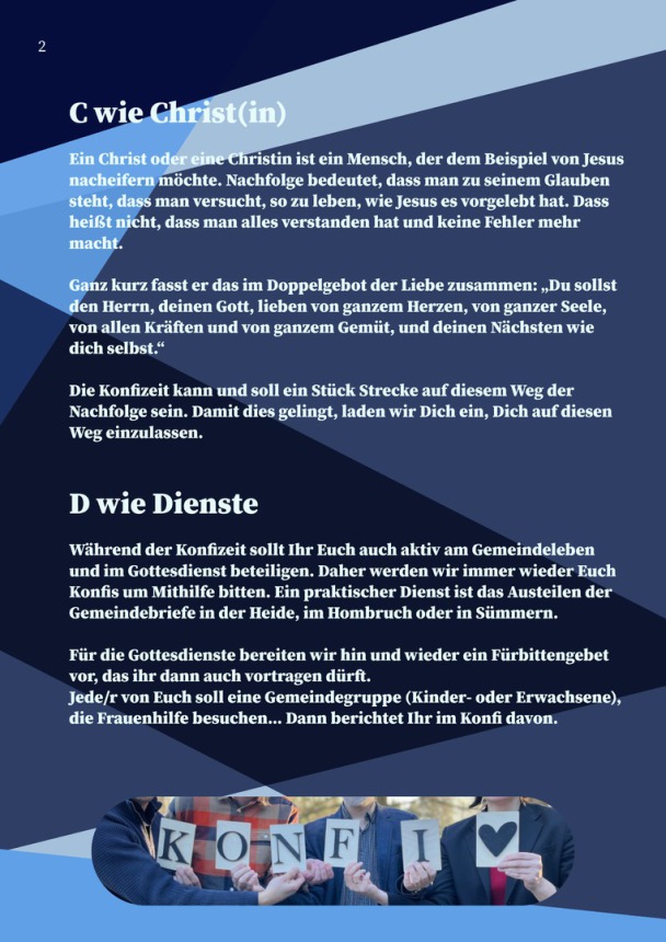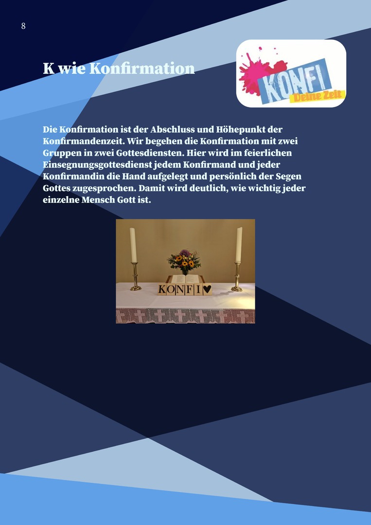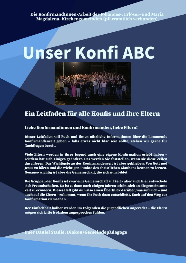 Die Konfirmandenarbeit (kurz Konfi-Arbeit) ist ein wichtiger Teil des kirchlichen Lebens und begleitet Jugendliche auf ihrem Weg zum Erwachsenwerden im Glauben. Sie bietet Raum, Fragen zu stellen, Gemeinschaft zu erleben und den eigenen Glauben zu entdecken.