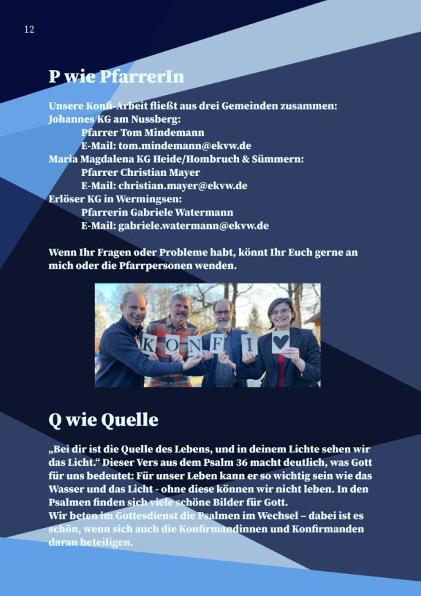 Die Konfi-Arbeit ist also weit mehr als Unterricht – sie ist ein gemeinsamer Weg, auf dem junge Menschen ihren Glauben entdecken, Fragen stellen dürfen und Kirche als lebendige, offene Gemeinschaft erfahren.