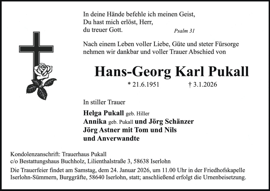 Ebenfalls verstorben ist Hans Pukall, unser langjähriger Presbyter,
